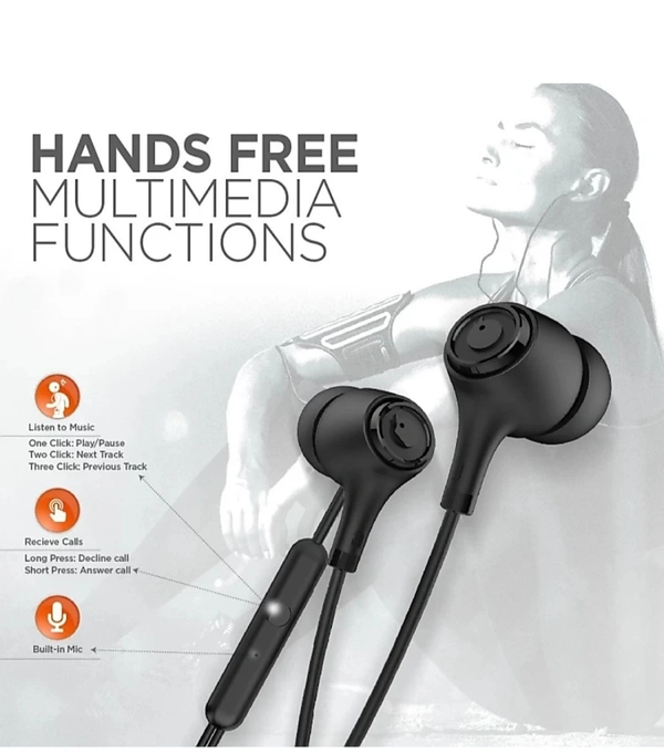 एर्गोनॉमिक डिज़ाइन वायर्ड ईयरफ़ोन माइक के साथ, पसीना-सबूत, प्रभावी ढंग से उलझन को कम करते हैं, उपयोग करने में बहुत आसान है. लाइटवेट डिज़ाइन व्यायाम, यात्रा या रोजमर्रा के पहनने के दौरान सुनने के लिए आदर्श है.