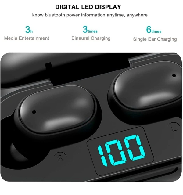 Bluetooth True Wireless In Ear Earbuds With Microphone Black