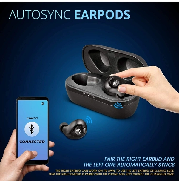 ऑटो सिंक फंक्शन - केवल सही ईयरबड को पेयर करें और बाएं स्वचालित रूप से पेयर करें.