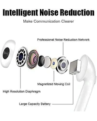 PSA i12 Wireless bluetooth 5.0 Earbud Headphones with Deep Bass, Passive Noise Canceling with Built-in HD Mic Speaker Supports All Smart Phones and Devices (White