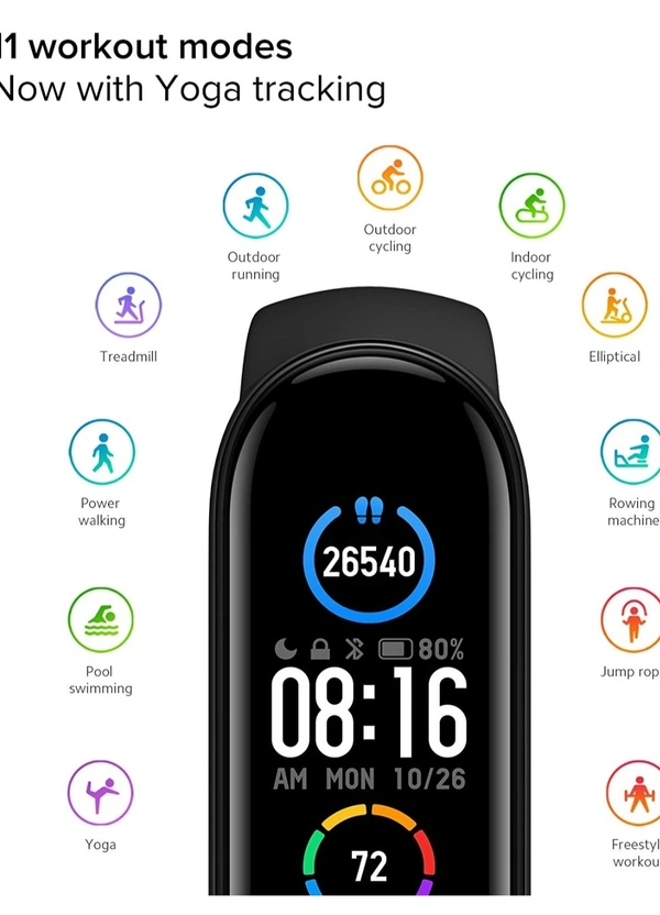 Smart Band 5-1.1" AMOLED रंग डिस्प्ले, 2 सप्ताह का बैटरी जीवन, 5ATM जलरोधी