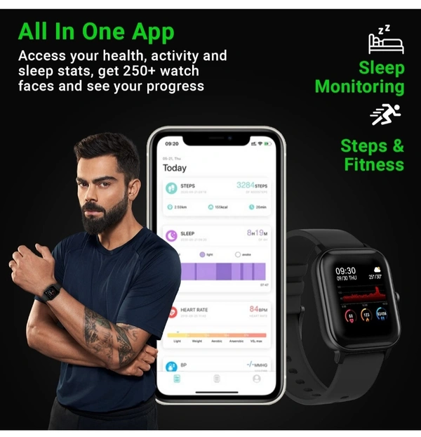 The first smart watch to feature SPO2 function - optical heart rate sensor with real-time monitoring of heart rate during exercise. Keep track of your SPO2 to ensure a good and healthy life. Measure blood pressure at all times. Heart rate, SPO2 and BP tracking is available in this smart watch.